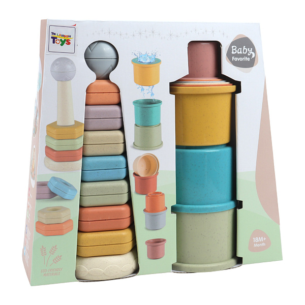 - Тип: набор развивающих игрушек (пирамидка и стаканчики)