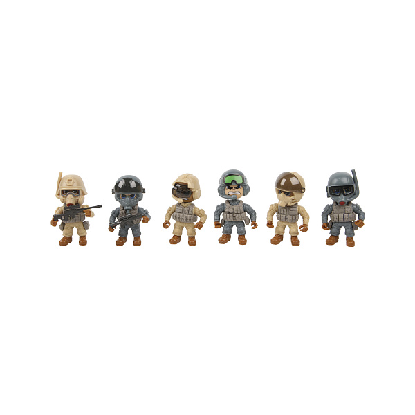 Набор из 6 солдатиков порадует поклонников войнушек, стрелялок и боев. Ребенок оценит экипировку своих бойцов, придумает немало секретных операций и заданий. Разнообразит игровой процесс стрелковое оружие, входящее в набор. Выстраивая солдатов в линию и отправляя на опасные задания, ребенок развивает моторику рук, логическое мышление, учит отрабатывать стратегии и развивает воображение.