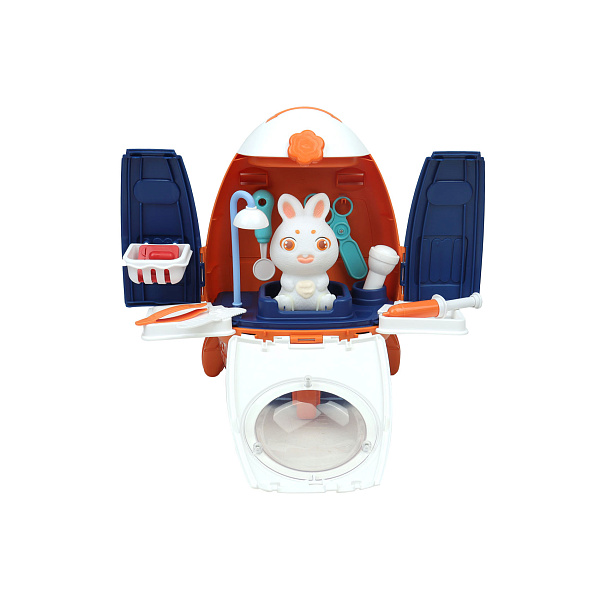 Внутри обтекаемого кейса на колесиках прячется маленький кролик высотой 12см. Он вызовет неподдельный восторг у юного ветеринара. В наборе имеется все необходимое для ухода за питомцем и его лечения. Ребенок сможет помыть нового друга с помощью душа, сделать ем укол. Комплектация включает в себя пинцет, ножницы, щетку, расческу, питание, фонарик, другие принадлежности. Игры с трансформируемым домиком и его содержимым надолго займут внимание малышки. В процессе игры развивается моторкиа рук и воображение, а также ребенок знакомится с новой для него профессией. Изготовлено из пластика. Всего в комплекте 18 деталей.
