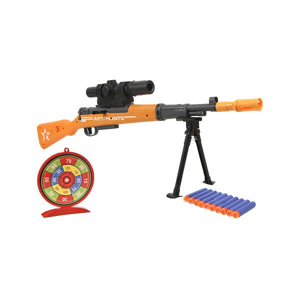 Отличным подарком для юного снайпера станет винтовка 98K с оптическим прицелом на подставке. В комплекте имеется десяток мягких боеприпасов из ПВХ и мишень. Мягкие продолговатые пули не ранят человека при прямом попадании. Чтобы стрелять по мишени было удобнее, в комплекте представлена подставка для лучшей фиксации. Стрелки постарше смогут стрелять уже без подставки. Выстреливая по цели, ребенок тренирует моторику рук, глазомер, скорость реакции и координацию движений.