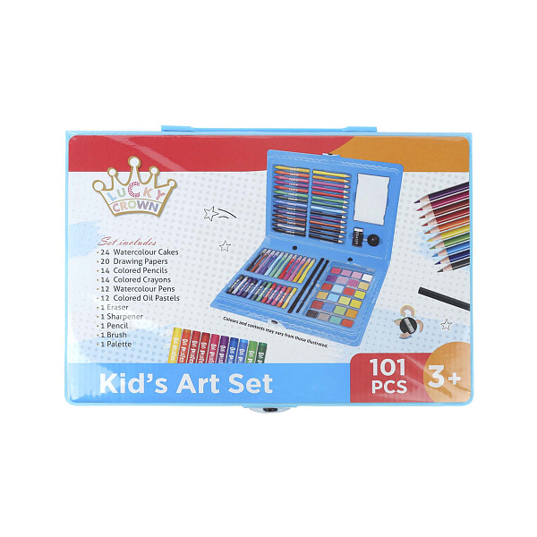 «Набор юного художника» поможет ребенку развить творческие способности, с ним инструменты для рисования всегда будут под рукой. В удобном чемоданчике компактно размещен 101 предмет. Состав набора радует своим разнообразием: