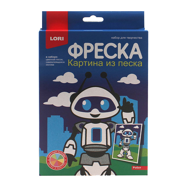 - В комплекте: цветной песок в отдельных пакетиках, самоклеящаяся картонная основа, подробная инструкция