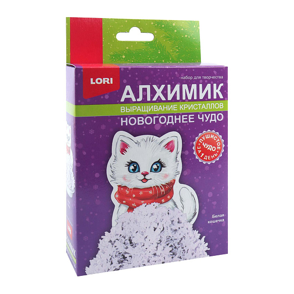 Набор для творчества «алхимик. Выращивание кристаллов. Белая кошечка» — занимательный научно-познавательный набор для детей старше 10 лет, позволяющий наблюдать процесс выращивания пушистой кристаллизированной фигурки в виде белой кошки. В набор входят раствор карбамида и поливинилового спирта с красителем, пластмассовый поддон для выращивания, картонная основа с изображением лошадки, декоративный элемент-основание и подробная инструкция.