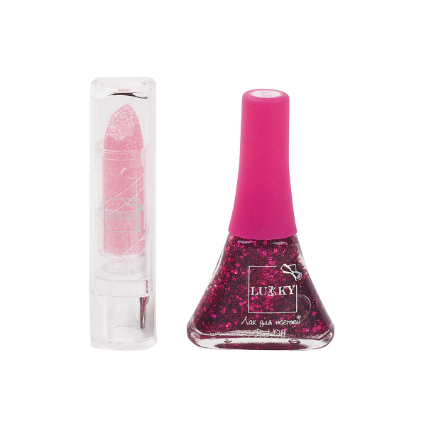 Набор LUKKY лак для ногтей фуксия и помада с блестками розовая