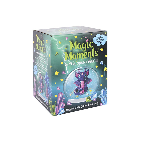 С помощью этого набора для творчества ребенок сам соберет волшебный шар «Дракон» с блестками и снежными хлопьями внутри. Это сложная, но очень интересная задача, ведь малыш должен самостоятельно слепить фигурку и украсить подставку. Для этого в комплекте дается разноцветный пластилин и подробная инструкция. Готового дракона помещают в жидкость под стеклянный купол с уже добавленными блестками и специальными химическими ингредиентами. Итоговый результат превзойдет все ожидания, ведь ребенок сможет своими руками создать сказку!