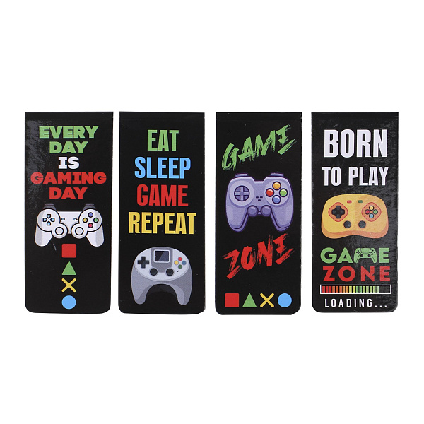Набор магнитных закладок «Gamer» создан для маленьких любителей игр. В комплект входят четыре закладки, украшенные яркими геймпадами и игровыми лозунгами. Каждая закладка позволит удобно фиксировать нужную страницу в книге или учебнике, удерживая ее на месте с помощью магнитов. Это поможет ребенку не потерять важное место в книге и легко продолжить чтение или изучение материалов. Компактный размер закладок позволяет всегда носить их с собой в рюкзаке.