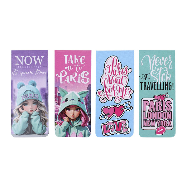 Набор магнитных закладок Paris Girl станет ярким акцентом для любой книги. В комплекте четыре закладки с красочными изображениями и вдохновляющими надписями. Изготовлены из сочетания магнитного винила и бумаги. Они надежно крепятся на странице. Подходят для учебников, дневников и любимых книг.