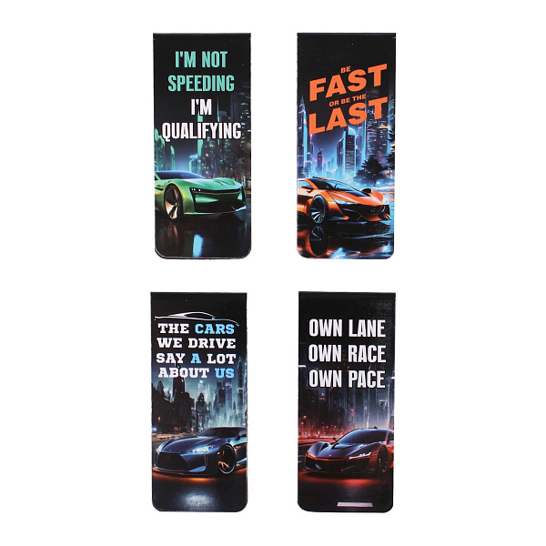 Каждая закладка украшена яркими изображениями спортивных автомобилей и мотивационными фразами. Эти закладки не только функциональны, но и станут сильным аксессуаром, которые выразит интересы ребенка.