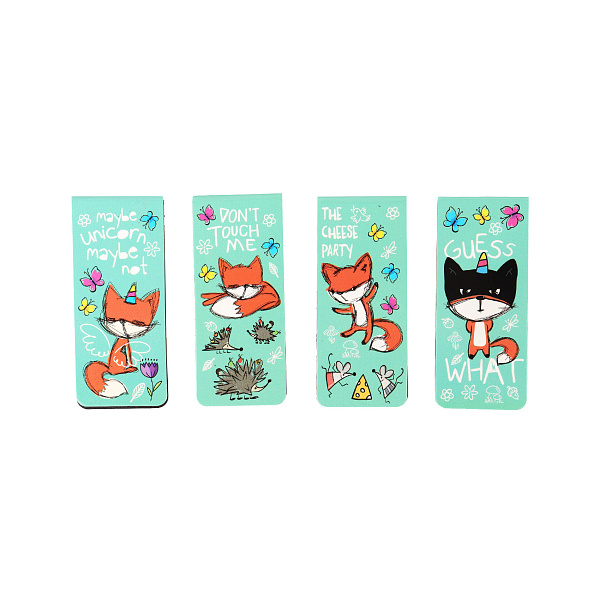 Магнитные закладки помогут ребенку настроиться на учебу и не потерять отмеченные страницы. Красочная канцелярия понравится ребенку: комплект из 4 закладок выкрашен в цвет тиффани, фон украшен изображениями игривого лисенка и тематическими надписями. Закладки изготовлены из бумаги и магнитного винила. Они мягко прилегают к бумажным страницам и помогают не забывать о прочитанном. Предназначены для использования в школьных учебниках и художественной литературе. Рекомендовано для детей дошкольного и школьного возраста.