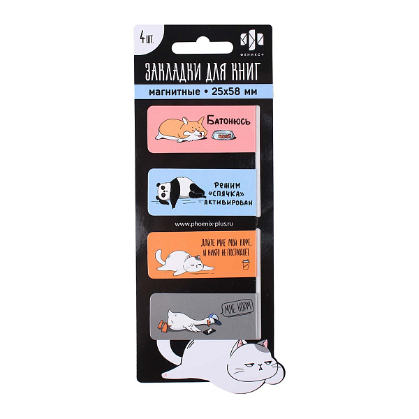 Набор магнитных закладок для книг «Друзья», состоящий из 4 штук, объединяет забавный дизайн и функциональность. Каждая закладка размером 25x58 мм украшена оригинальными изображениями животных и шуточными надписями, которые поднимают настроение.