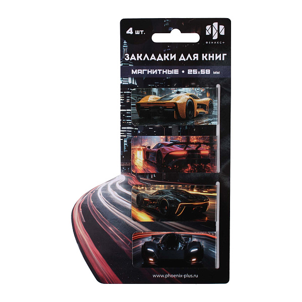 Набор магнитных закладок для книг «Машины» состоит из четырех ярких закладок с изображениями спортивных автомобилей. Эти закладки идеально подходят для учеников и любителей чтения.