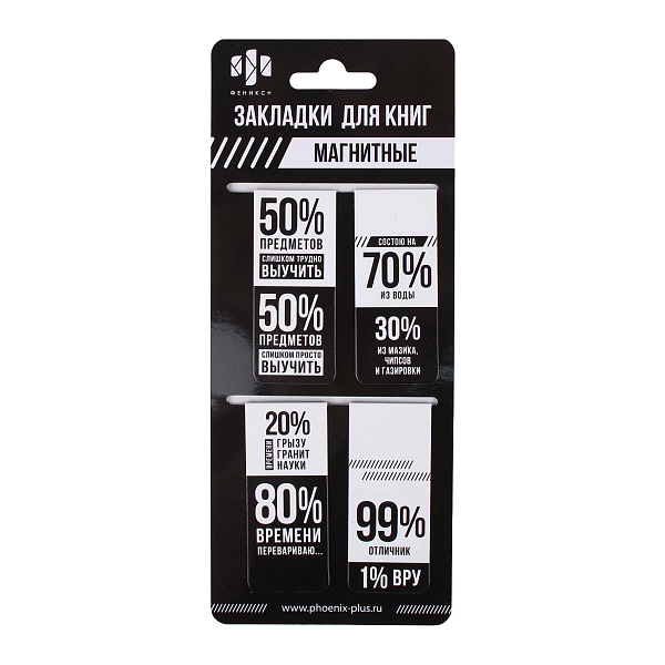 Набор магнитных закладок для книг «100%» включает 4 стильные закладки, которые обеспечивают удобство и надежность в использовании. Эти закладки идеально подходят для школьных учебников, художественной литературы и дневников, становясь незаменимым помощником в повседневном чтении.