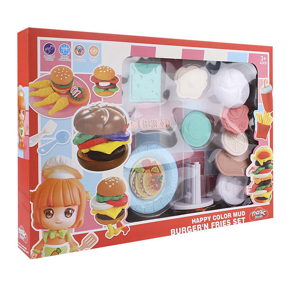 Набор массы для лепки включает 10 ярких цветов и 14 разнообразных предметов, которые позволяют создать множество аппетитных гамбургеров и других блюд. Яркая цветовая палитра и разнообразие форм способствуют развитию воображения и мелкой моторики у детей.
