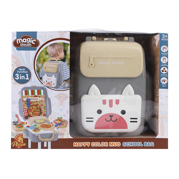Рюкзачок содержит 26 предметов, включая формы и инструменты, которые помогут придавать тесту нужную форму. Удобное хранение всех компонентов в рюкзачке делает его идеальным для игр дома или на улице, а также позволяет легко переносить набор. Игрушка может использоваться в трех видах: как рюкзак, столик и столик на ножках.