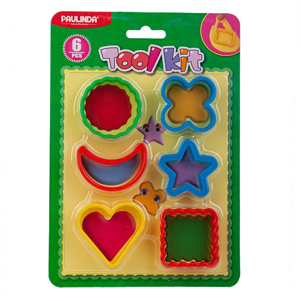 В комплекте – 6 разноцветных формочек форм: квадрат и круг с рифлеными краями, звезда и полумесяц, сердечко и цветок. Малыш может использовать детали в качестве основы или элементов аппликации, проявить фантазию и украсить пластилиновые «пирожные» для кукольного праздничного чаепития.