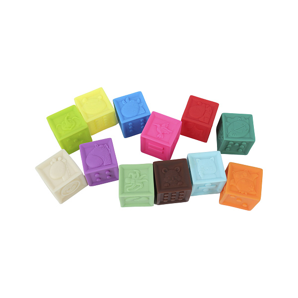 Набор из 12 мягких кубиков с картинками для самых маленьких. Игрушки изготовлены из эластичного материала – ПВХ. Они легкие и приятные на ощупь. Кубики выполнены в разных цветах, а по бокам у них изображены различные выпуклые картинки и знаки. Все это помогает малышам улучшить свои тактильные навыки, цветовосприятие. Строя башни, дети учатся концентрации внимания, развивают логическое мышление. Это полезная игрушка заложит фундамент навыков, которые станут залогом будущих успехов ребенка в жизни.