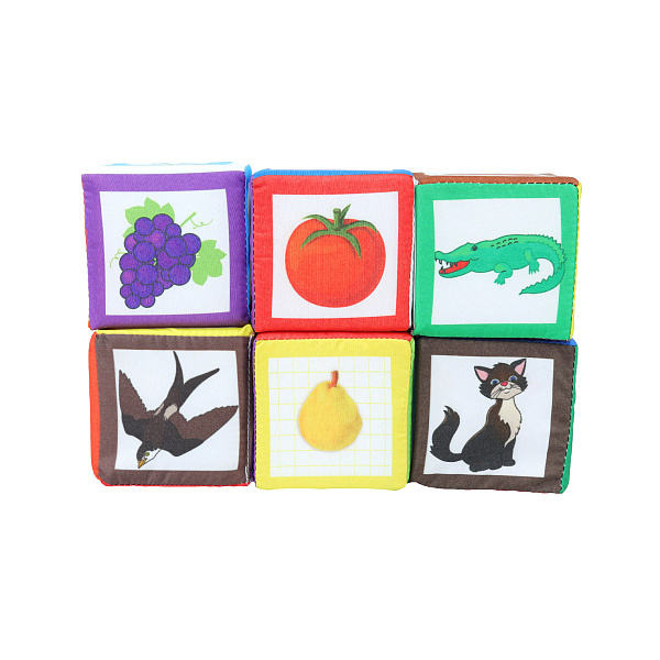 Кубики выполнены из текстильного материала и синтепона, поэтому хорошо держат форму и безопасны во время игры. Игрушка выполняет обучающую функцию: стороны кубиков дополнены красочными цветными рамками, внутри которых ребенок найдет рисунки фруктов, овощей, животных и других предметов. Познакомьте малыша с многообразием мира, животными, погодой, развивая кругозор, моторику рук, память и внимание. Рекомендовано для детей старше 1 года.