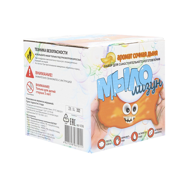 Набор для творческих экспериментов «Мыло-лизун» поможет самостоятельно создать необычное косметическое средство. Забавное мыло с ароматом сочной дыни пригодится для лепки и игр, а также его можно использовать для мытья рук и купания. Изделие из натуральных компонентов отличается пластичностью, хорошо растворяется в воде. Ароматизатор дарит мылу приятный фруктовый запах, краситель придает насыщенный цвет, а глицерин сохраняет мягкость кожи.