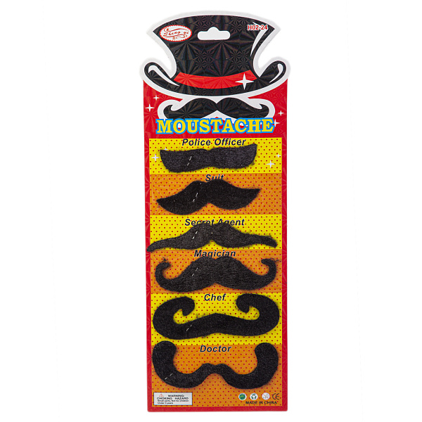 В набор входят накладные усы черного цвета шести форм. Их используют для создания эффектных образов, применяют в качестве дополнения к карнавальному или театральному костюму. Аксессуар имеет универсальное назначение, а его использование не нанесет вреда организму человека. В составе изделия нет токсичных компонентов, поэтому ношение усов не повлечет за собой аллергической или иной негативной реакции. Можно без опасения использовать не только взрослым, но и детям старше 3 лет.