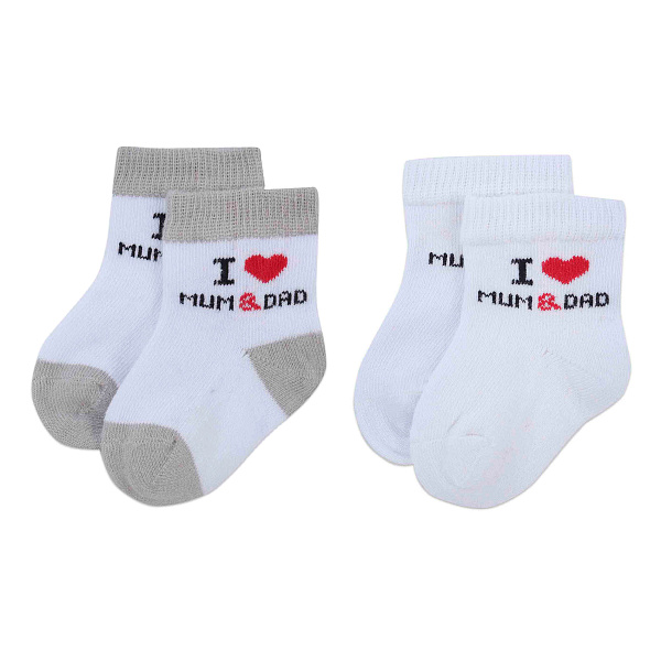 Набор из трех пар детских носков, выполненных из хлопка, обеспечивающих мягкость, воздухопроницаемость и комфорт при носке. Комплект включает три варианта: белые носки с серыми пятками и манжетами с надписью в черно-красных тонах, полностью белые носки с таким же принтом, и однотонные голубые носки без рисунков. Все модели оснащены эластичным манжетом, который плотно фиксирует носок на ноге, не создавая давления и дискомфорта.
