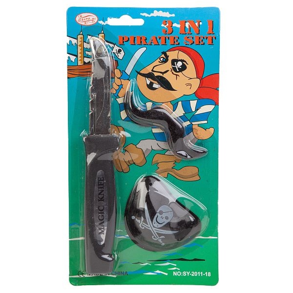 Игра станет намного реалистичней, ребенок быстрее вживется в придуманный образ и сможет раскрыть в себе способности к актерскому мастерству. Повязка с изображением черепа на резинке, чтобы регулировать размер, усы клеятся на липучке, а нож безопасен — лезвие тупое и прячется в рукоять, чтобы родители не переживали о возможном травматизме в процессе разворачивающегося сражения. Бюджетная стоимость позволит купить набор и не переживать за его целостность.