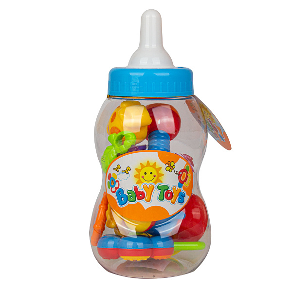 С помощью погремушек ребенок учиться познавать окружающий мир и развивает навыки мелкой моторики, внимания, цветового и слухового восприятия. Набор погремушек в бутылочке включает в себя погремушки «Цветочек», «Жираф», «Фрукты», «Месяц» и «Классика». Бутылочка с игрушками плотно закрывается, ее удобно хранить в домашних условиях и брать с собой на прогулки или в гости.