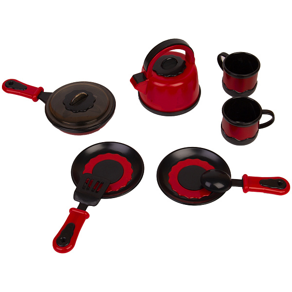Мини набор посуды для приготовления станет прекрасным подарком для маленьких девочек. Яркие тона 5 предметов, набор дополнительных аксессуаров позволит юным леди заняться «приготовлением» самых разнообразных блюд.