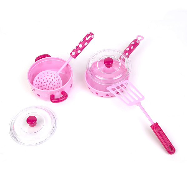 Набор миниатюрной посуды «Kitchen Attractive» приятного лилового цвета с ярко-розовыми ручками станет чудесным дополнением к игрушечной кухне и позволит девочке побыть взрослой хозяйкой дома.