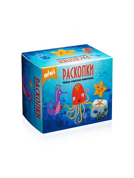 Порадовать и развлечь детей старше 6 лет поможет набор для проведения археологических раскопок. Целью поиска является фигурка обитателя моря. Чтобы добраться до нее, следует измельчить твердую породу. Движения должны быть аккуратными и точными.