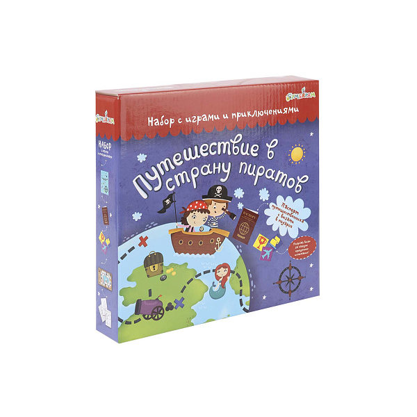 Набор с играми и приключениями «Путешествие к пиратам – это не просто очередная настольная игра. Это целый набор захватывающих приключений и азартных, увлекательных развлечений. В комплект входит само игровое поле с кубиками и фишками, а также книжка с инструкциями и заданиями, игровые паспорта путешественников и визы-наклейки для них, а также сразу три открытки-раскраски. Обратите внимание: игра содержит мелкие детали, поэтому игры самых маленьких детей необходимо проводить только под постоянным наблюдением или непосредственном участии в игровом процессе более взрослых ребят или родителей.