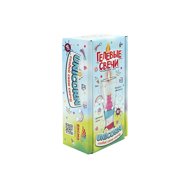 Творческий набор «Гелевые свечи» позволит детям и взрослым самостоятельно создать дизайнерские свечи. В процессе работы получаются яркие изделия из гелевой массы, цветного песка и розовой фигурки единорога. Чтобы воск хорошо растворился и остался прозрачным, следуйте инструкции. Готовую свечу можно использовать в качестве декора или подарка близким.