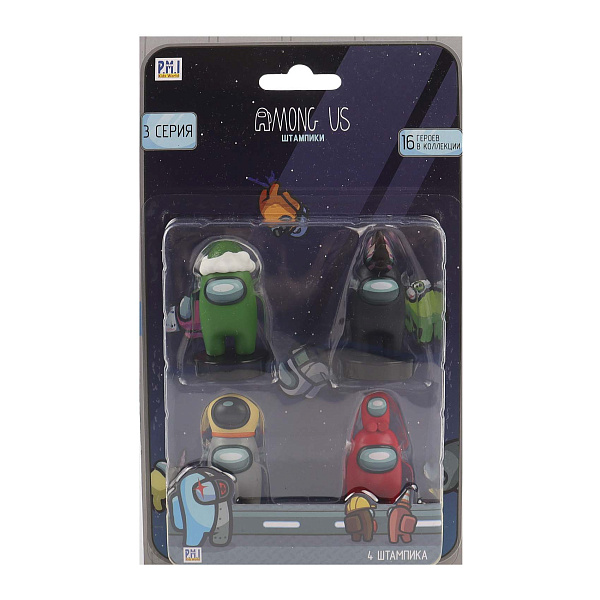 Набор фигурок-штампов Among Us включает четыре уникальных героя. Яркий дизайн и разнообразие цветов делают набор привлекательным для поклонников игры. Каждая фигурка изготовлена из прочного АБС-пластика, что обеспечивает долговечность и безопасность использования.