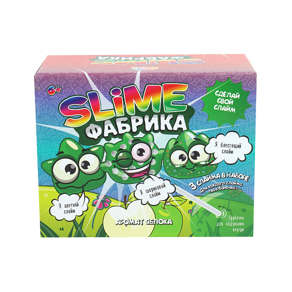 Наполните комнату насыщенным яблочным ароматом с набором «Slime Фабрика». Он порадует ребенка не один раз, а целых три, ведь внутри собраны детали для создания трех кислотно-зеленых слайма. В красочной упаковке юный химик найдет флаконы, пипетки, палочки, пластиковую трубочку и реагенты (натуральные красители и ароматизаторы). Следуя инструкции и смешав детали, ребенок получит 3 эластичных слайма с ароматом зеленого яблока: цветной слайм, шариковый слайм и блестящий слайм. Для каждой массы прилагается отдельная баночка. Трубочка в наборе предназначена для надувания слайма изнутри.