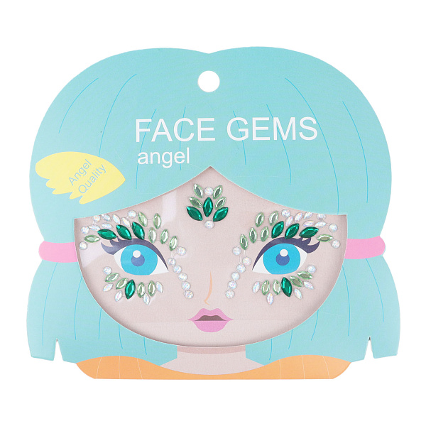 Стразы можно использовать повторно, если аккуратно снять их и нанести специальный клей для ресниц. Упаковка в виде лица с голубыми волосами и голубыми глазами помогает представить, как будут смотреться украшения на лице.
