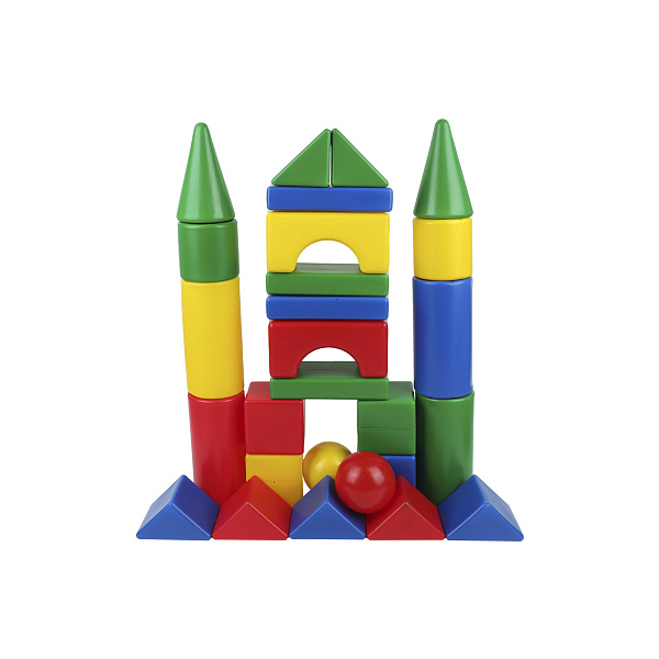 Набор из крупных строительных деталей разной геометрической формы поможет развлечь мальчиков и девочек дошкольного возраста. Из 27 элементов можно построить дом, башню, забор, средневековый замок высотой 55 см.