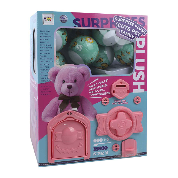 Набор «Медвежата» включает десять шариков-сюрпризов. Каждый шарик скрывает внутри маленькую игрушку. Упаковка набора выполнена в виде сейфа с поворотным механизмом. Это делает процесс открытия более интересным.