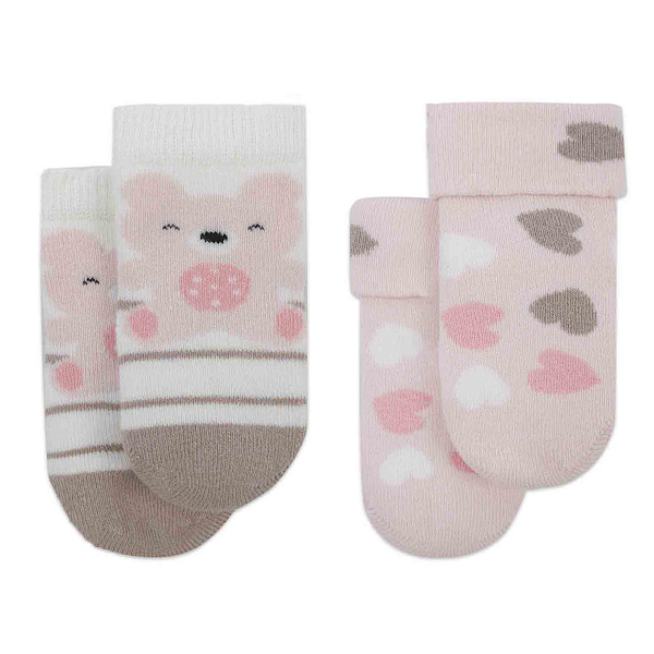 Набор теплых носков PIMPO с отворотом и принтом мишек и сердечек розовые и кремовые 2пары