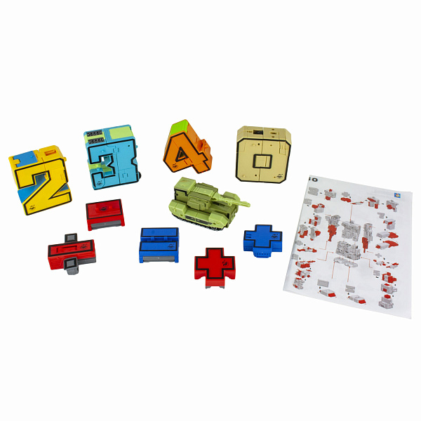 Два в одном – игровой набор «Трансботы. Ударный батальон». Это не просто цифры и арифметические знаки – каждая фигурка легко превращается в робота или боевую технику. Если собрать весь комплект фигурок, можно устраивать дома с друзьями настоящие баталии. А еще можно устраивать соревнования – кто быстрее совершит трансформацию. Во время игры ребенок не просто учит цифры и собирает головоломки, но получает навыки общения со сверстниками.