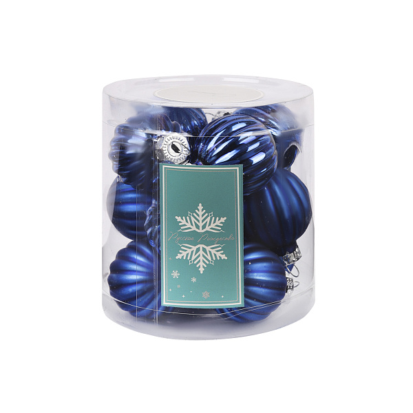 Набор елочных игрушек прекрасно подойдет для украшения новогодней елки, создаст яркий и красочный акцент в интерьере. Выполнены в глубоком синем цвете. Рельефная поверхность шаров создает интересный визуальный эффект. Грани каждого украшения переливаются как при дневном свете, так и в сиянии новогодних гирлянд.