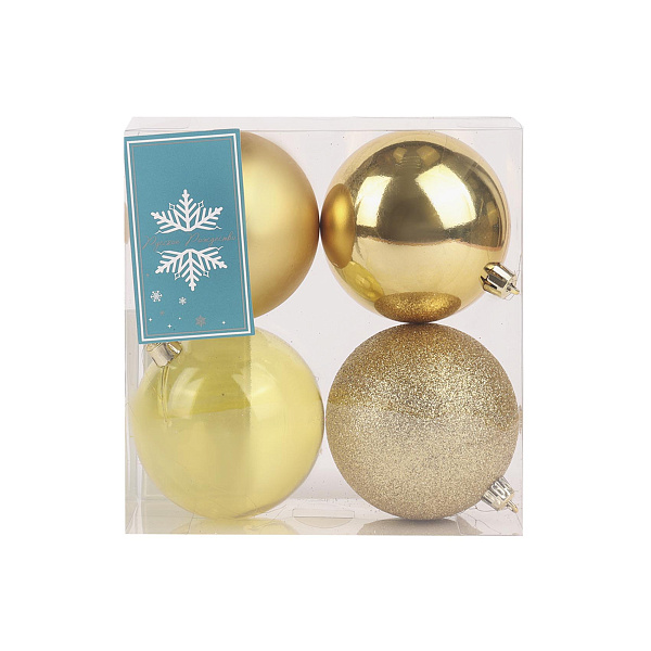Набор содержит украшения четырех разновидностей – глянцевый, матовый, прозрачный и глиттерный шары. При расположении на елке глянцевые шары лучше всего смотрятся рядом с матовыми, а прозрачные – рядом с шарами, покрытыми блестками.