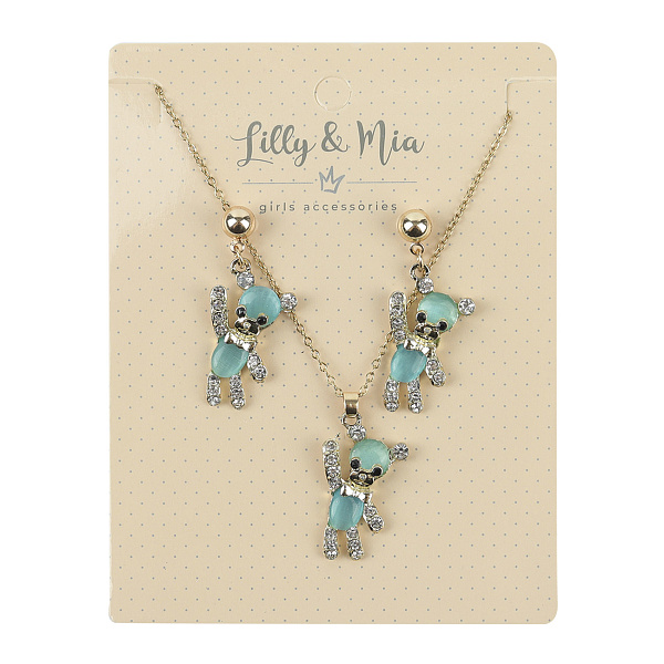 Набор детских украшений с голубыми медвежатами покорит маленькую любительницу животных.