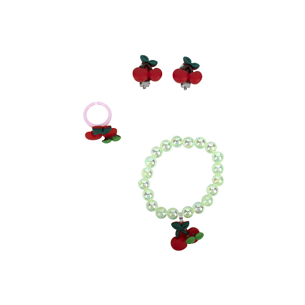 Набор украшений для девочек с яркими полимерными вишенками придется по вкусу маленьким модницам. Клипсы с прочной алюминиевой застежкой чудесно фиксируются на мочке и не пережимают ухо. Кольцо при этом регулируется по размеру в соответствии с толщиной пальца. Колье из прозрачных фактурных бусин с амальгамой дополняет комплект. Набор подойдет для торжественных выходов или ежедневного использования девочкам старше 3 лет. Классическое оформление и традиционное цветовое сочетание позволяют сочетать комплект с одеждой как классического, так и городского стиля, формируя чувство стиля.