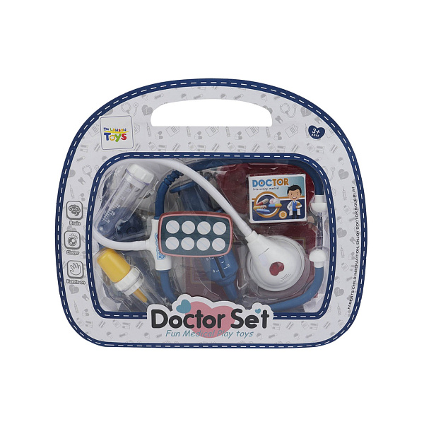 В комплекте фонендоскоп, шприц, пробирка, рецептурный лист, монитор, лоток, лампа, ванночка, таблетки и капли. С помощью инструментов ребенок с удовольствием измерит температуру и прослушает сердцебиение любимого питомца, возьмет анализы и назначит лечение.