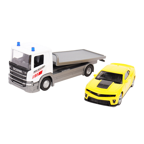 Набор WELLY Грузовик Scania P320 с белым кузовом и Chevrolet Camaro желтая с 3лет