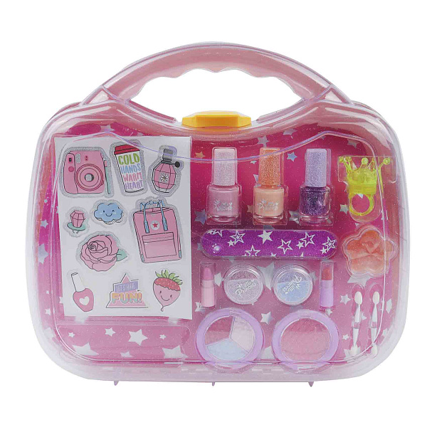 Набор для макияжа и маникюра в компактном пластиковом чемоданчике понравится юным любительницам игры в мастера красоты. В комплекте: блески для губ, помады, румяна, тени для век и лак для ногтей разных оттенков. В набор также входят удобный пилочек, разделитель для пальцев и аппликаторы, что позволяет легко создавать разнообразные образы для игр.