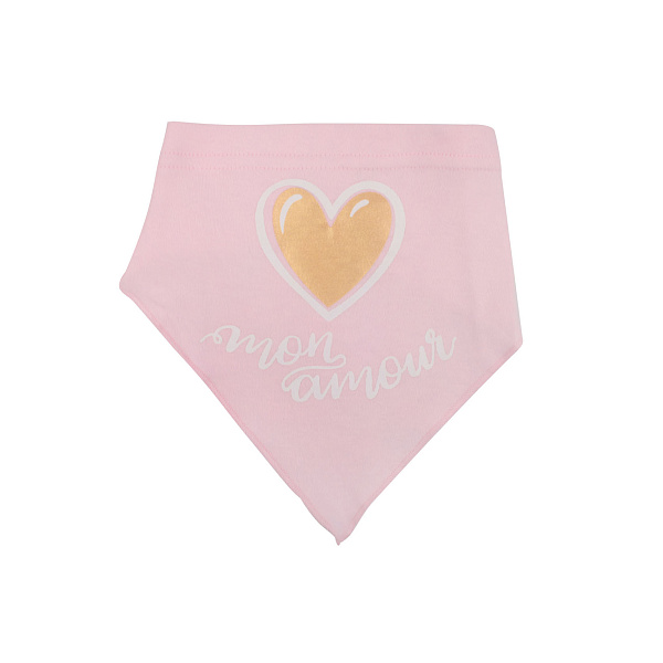 У нагрудника есть определенная функция, которую он выполняет на ура: защищать одежду ребенка от повышенного слюнотечения. Когда у малышей начинают резаться первые зубы, это может сопровождаться обильным слюнотечением, которое может раздражать кожу подбородка и сильно мочить одежду. Стоит ли говорить, что постоянно находиться в подмоченных майке или боди не слишком-то приятно. Все время переодеваться весьма хлопотно и даже бессмысленно – проще периодически менять нагрудник! Благодаря универсальному размеру и двум кнопочкам нагрудник подойдет на шею любого размера. Нагрудник сшит из стопроцентного хлопка, выполнен в чудесном розовом цвете и украшен надписью на французском «Моя любовь».