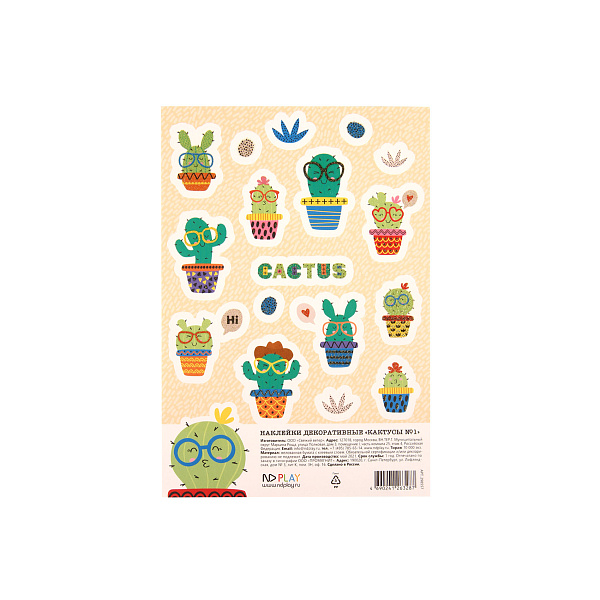 В набор входят озорные, милые кактусы. Они выражают свои эмоции, чувства: радость, любовь, обожание, нежность. Удивительные растения носят очки самых причудливых цветов и форм. Достаточного одного взгляда на такие изображения, чтобы на лице появилась улыбка. Наклейки можно разместить в специальном альбоме или использовать как модный декор. Работа с такими декоративными элементами доставит ребенку огромное удовольствие. Она поднимет настроение малыша, если тот грустит. Набор предназначен для детей в возрасте от 4 лет и старше. Он отлично подходит для занятий по развитию мелкой моторики рук.