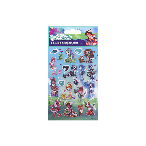 Многоразовые наклейки по мотивам детского мультфильма «Enchantimals» внесут разнообразие в личные вещи ребенка. Их можно легко наклеить на тетради, пеналы и даже игрушки. Наклейки сохраняют свои клеящие свойства даже после многократного использования. В основе использованы полимерные материалы с клеевым слоем. Манипуляции с наклейками развивают моторику рук и аккуратность. В упаковке 22 наклейки, которые ребенок может использовать по своему усмотрению. Рекомендовано для детей старше 3 лет.