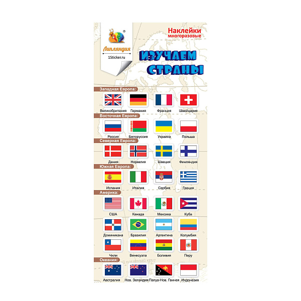 Увлекательно путешествовать по карте мира, изучить расположение и столицы новых государств или оригинально украсить нужный предмет помогут многоразовые стикеры с эффектом объема. Они изготовлены из экологичного пластика, поэтому будут долго радовать каждого ребенка. Клеевой состав позволяет неоднократно перемещать декоративные элементы, обеспечивая при этом надежную фиксацию. Творческая деятельность развивает воображение, активирует моторику рук, формирует художественный вкус.