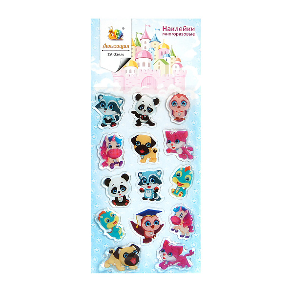 Очаровательные наклейки с милыми зверюшками на прозрачной подложке можно приклеивать несколько раз, меняя место расположения, и при этом они не потеряют своих клейких свойств и внешней привлекательности. Всего в упаковке представлены 14 наклеек: 7 зверушек по две разных наклейки с изображением каждого – енот, собака, кошка, динозавр, единорог, панда, сова.